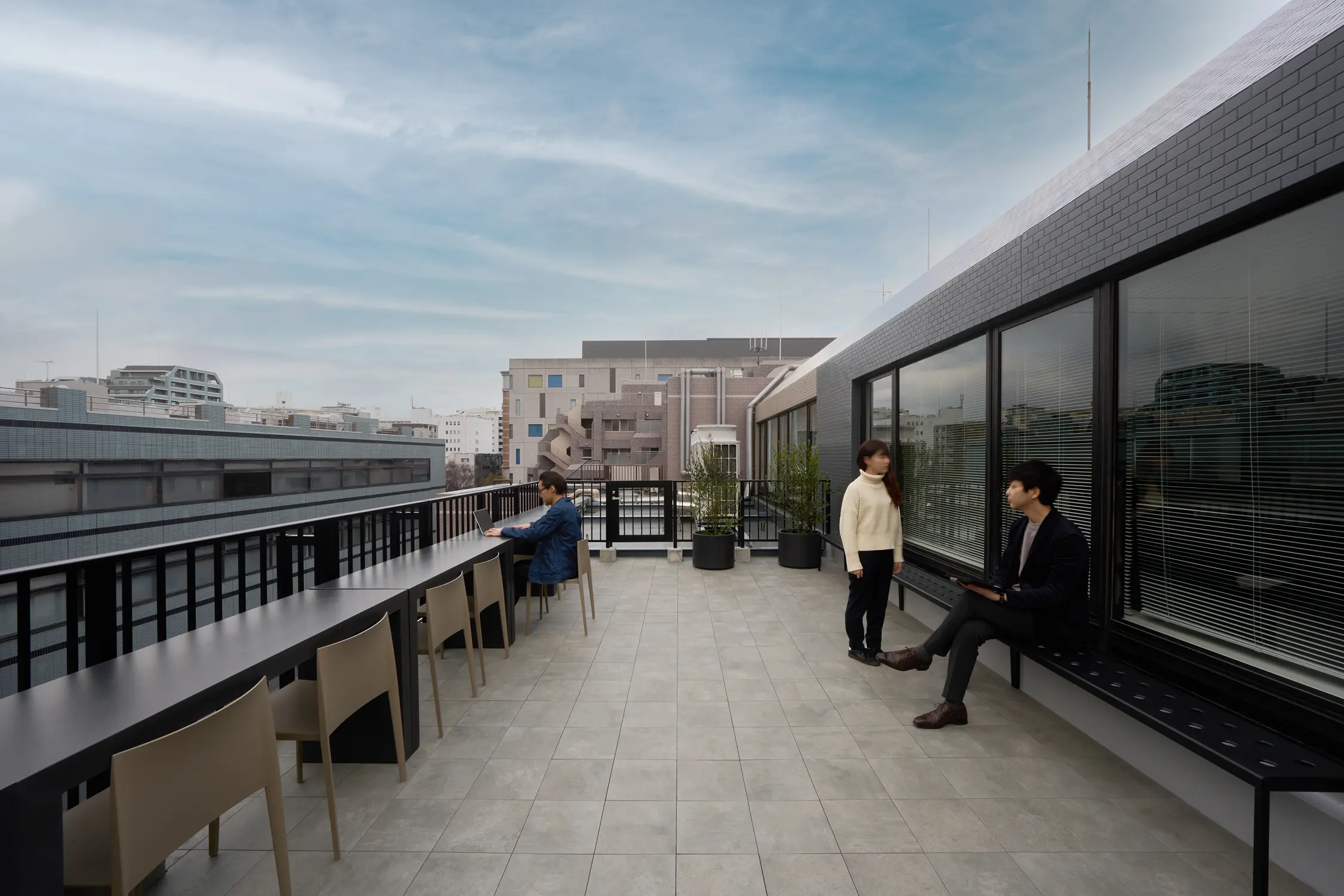 屋上バルコニーは新たなアメニティとして周辺ビルとの差別化に貢献。ウッドデッキパネルによる可動床仕上げで、防水層を保護しつつ快適な歩行環境を実現しました。安全面や法規制への対応、既存条件との整合など技術的な課題も多いなか、関係各所と丁寧に調整を重ねたことで、機能性と魅力を兼ね備えた空間が生まれました。
